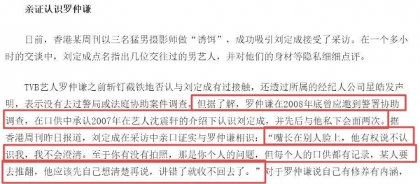 后来,果然罗仲谦“打脸”推翻了先前的说法,承认2007年时经朋友介绍认识了刘定成,见过2次面。