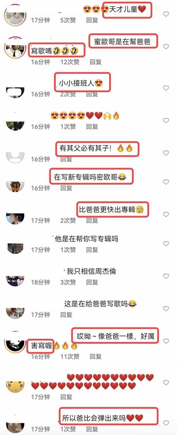 还有小伙伴笑称罗密欧是不是在给爸爸写歌?儿子的专辑比爸爸来得快!大家都非常期待周杰伦把儿子所创作的曲子给弹奏出来!