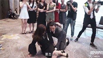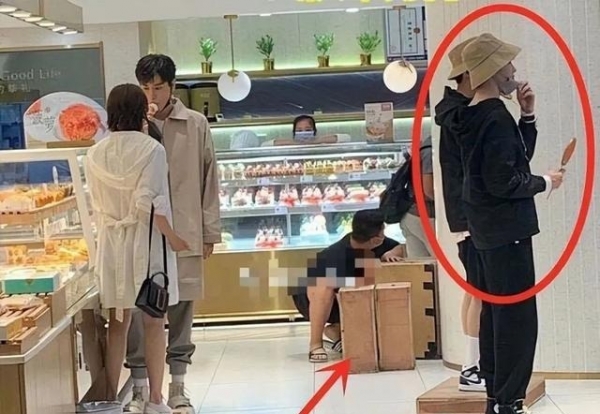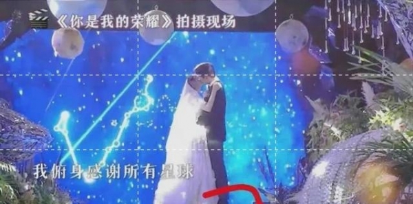 镜头里林嘉绮挽着黄晓明在朝前走,镜头底下,工作人员则在马不停蹄地把走过的箱子迅速地换到前头去,目的就是为了让小明哥保持男主略高的人设。