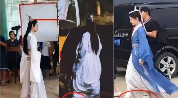 在剧组,罗云熙、王一博、鞠婧祎等明星都被拍到过穿着这种隐形增高鞋拍戏,可以说是既解决了身高差问题,也解放了剧组工作人员的双手。