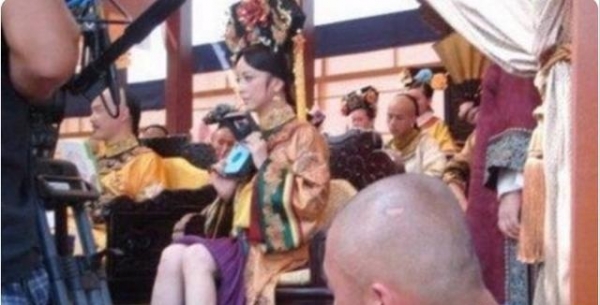 当年《美人天下》开拍时,剧组就出现了一大批的"光腿",演员们上半身仪表堂堂,表情严肃,下半身却都是把裙摆撩起,穿着拖鞋在拍戏。