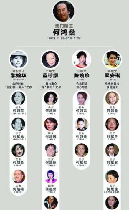 除了早早离世的原配和刚刚去世的二房太太,赌王家还有两位太太,分别是三房太太陈婉珍和四房太太梁安琪,她们四人和赌王一共生育了17个子女,那么媒体提到的"所有子女"指的是这17位全部都在,还是只有二房太太亲生的5位呢?