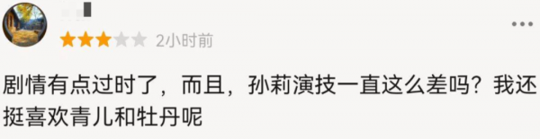 对于孙莉复出首作的失利,有网友表示这是快餐市场下的戏骨之憾。