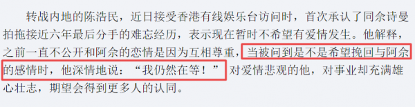 不死心的陈浩民,曾表示愿意等下去。