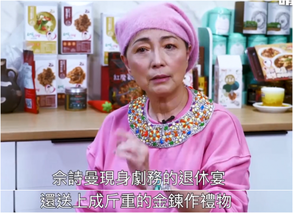 比如有一次,一位剧务退休,很多人觉得不在其位的人,就没必要巴结了。但佘诗曼却到场祝贺,还送了足斤重的金饰。