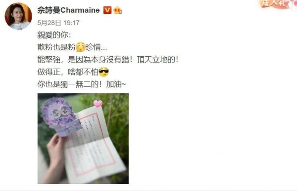 对所有粉丝一视同仁,散粉也是粉。