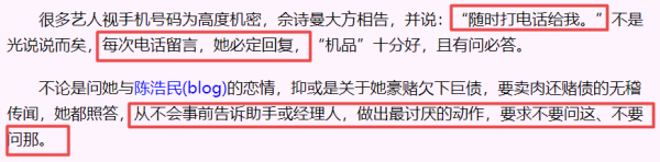 著名娱记查小欣曾说过,佘诗曼是"机品"十分好的艺人。