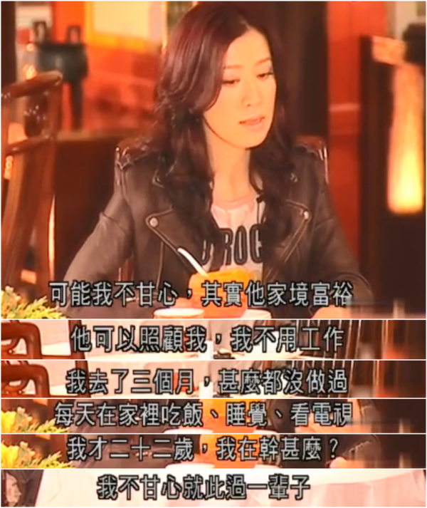 之前入围最佳女主角,查小欣问她:"得视后是否能提升身价?"。