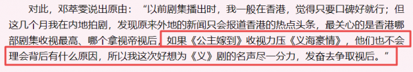 09年、10年,邓萃雯靠《巾帼枭雄》《义海豪情》发力,公开叫板佘诗曼的《宫心计》《公主嫁到》。