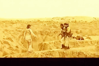 拍《火舞黄沙》的时候,佘诗曼站在不到一尺宽的崖边,土质很松,一个不小心就能滚下去。