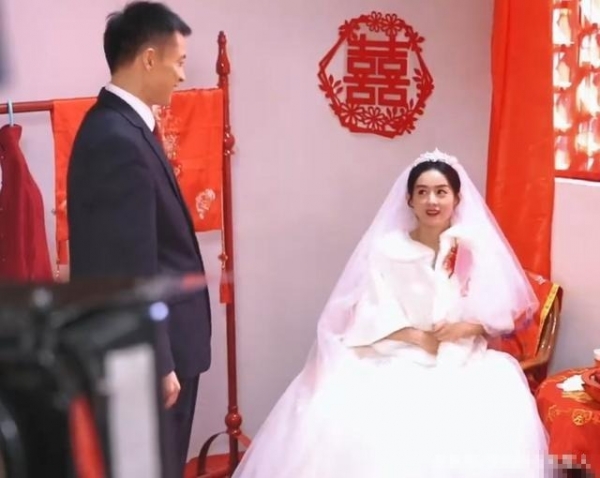 赵丽颖在这场婚礼里,扮演的可是主角,作为新娘,她在这场农村婚礼里连换两套婚服。第一套是带了点年代感的婚纱款,考虑到天气因素,婚纱外还裹了层白色貂绒外套。