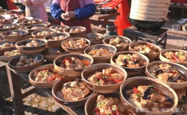 一旁就打着露天灶台,作为临时厨房。做席的厨师早就准备好了大菜、凉菜,鸡鸭鱼肉、凉菜蒸菜全都齐活,就等一开席,往每个桌子上上菜了。