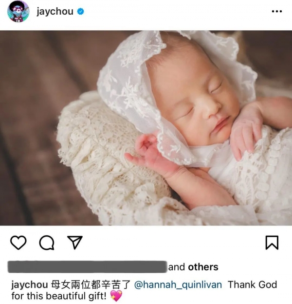 ▲ 5月6日,两人在社交平台官宣第三胎女儿Jacinda的出生,周董还破天荒地晒了宝宝的正面照,喜悦之情溢于言表。
