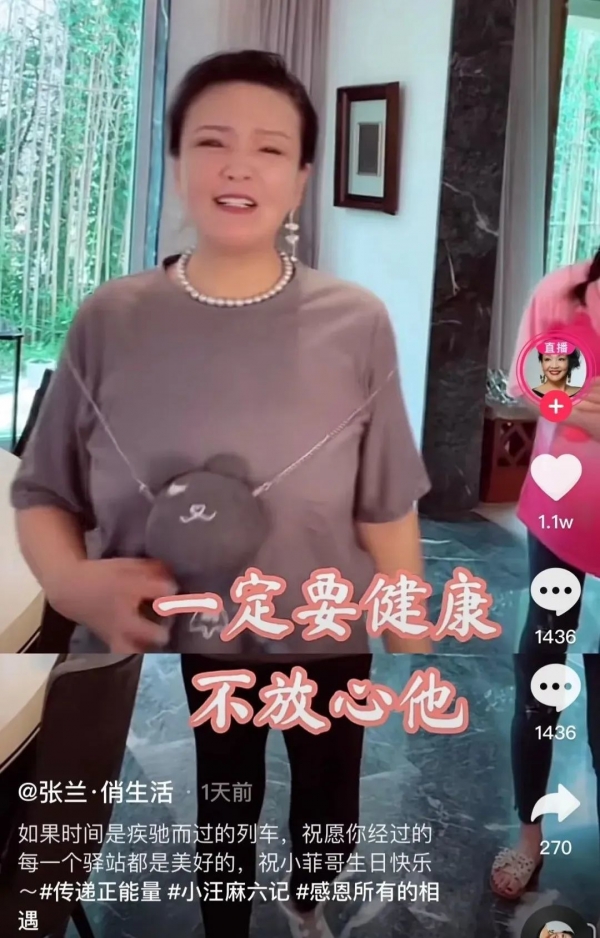老妈张兰在当天抖音发的视频里说,"我告诫自己一定要长寿,一定要健康,否则我真不放心他。"