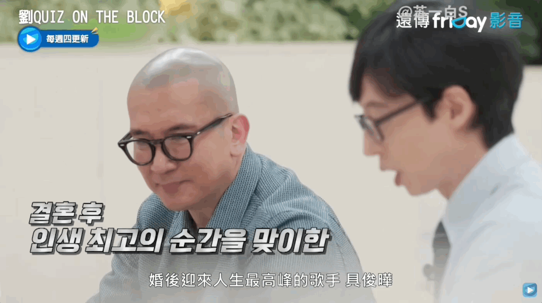 而整期节目里感觉最正确的话便是这句刘在石对他的介绍,"婚后迎来人生最高峰的歌手":
