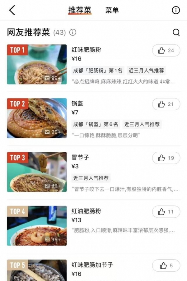 从画面中可以看出,王思聪同行的一共有四人,翻看该店的菜单会发现,王思聪整桌的价格不到百元,人均一碗16元的肥肠粉,除此之外还有两盘锅盔和一盘牛肉。