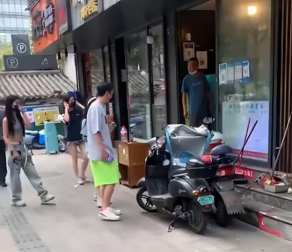 店老板似乎也对这场面感到意外,站在门口看了好久。