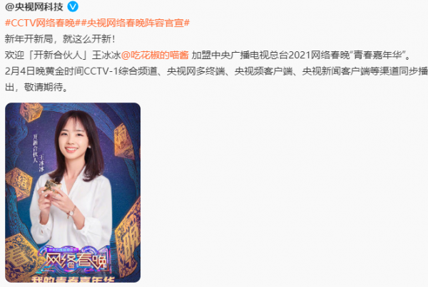 但这个小插曲并不影响王冰冰的工作表现,央视也让冰冰参与到台前的更多工作当中。