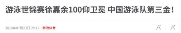 2017年在布达佩斯世界游泳锦标赛上,徐嘉余以52秒44的成绩夺得男子100米仰泳的金牌,也是中国选手在男子仰泳项目上获得的第一枚世界大赛的金牌。