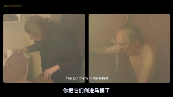 趁着老头不注意,老太太又把丈夫写书的手稿全部扔进马桶里。
