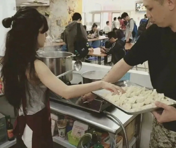 还发展了在学校美食街卖抄手的副业。