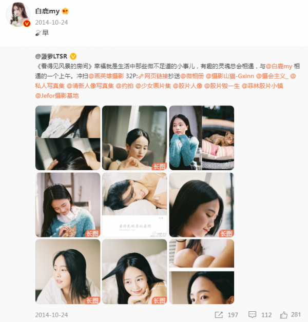 后来白鹿陆续拍摄了《文艺风象》《爱格》等杂志内页,以及一些青春小说封面。