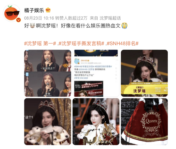 粉丝花了1500w、真真实实打投出来的冠军沈梦瑶,因为手撕发言稿上了热搜,结果还是放眼整个内娱查无此人,只能是粉丝自嗨。