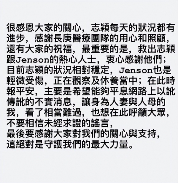 Jenson表现出对父亲林志颖的担心,这是每一个孩子的天性,而他在车祸之后遭到了网暴,这也是母亲陈若仪出面发文的原因之一。其实也是想要告诉那些黑子们:别再对一个孩子做出任何的伤害行为。