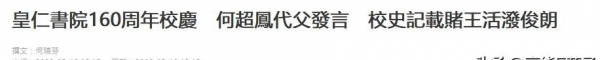 皇仁书院160年大庆时,何鸿燊与霍英东均已离世。何鸿燊的女儿何超凤、霍英东的孙子霍启刚还分别致辞,追忆长辈旧事。原来校史还特别把赌王的"俊朗"作为重点记了下来。
