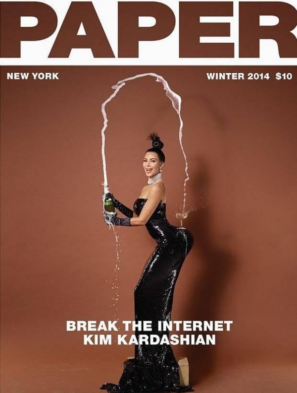 2014年,金·卡戴珊在杂志《PAPER》封面上翘臀托酒杯的造型,一鸣惊人,火爆全网,引起了一阵模仿的风潮,