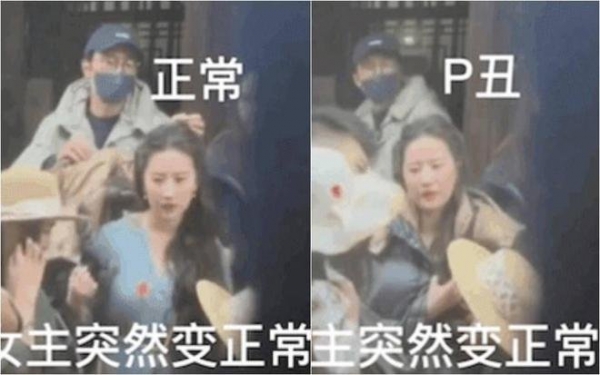 随后,有网友晒出刘亦菲面部变化的部分画面,并配文字称:"拒绝高糊故意P丑路透"。仔细看,刘亦菲的面部似乎确实发生了变化。她的脸被疑开了滤镜一样忽大忽小,被网友质疑是有人在恶意P图丑化刘亦菲。