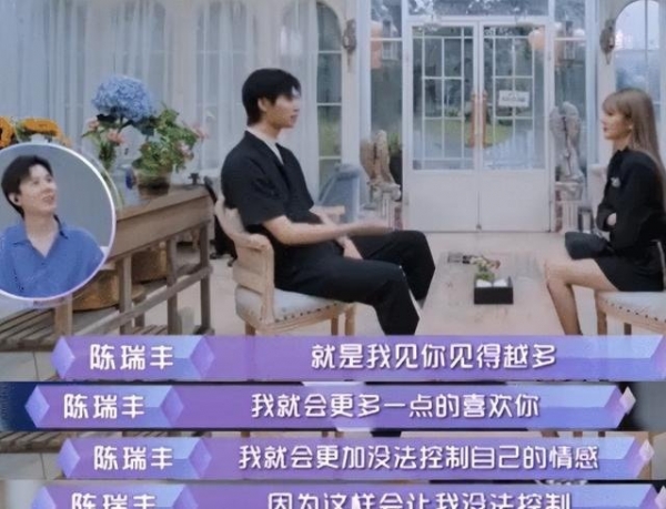 之后,节目组赶忙为周扬青安排了一位新的恋爱对象陈瑞丰,陈瑞丰和她的相处方式更偏霸总一点。