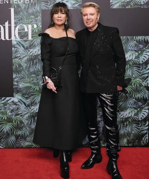 甄子丹穿着一身笔挺的黑色西装,脖子上戴了领结,头发梳成大背头,造型有型有款。已经59岁的他,保养得非常好,无论皮肤还是身材都比同龄人状态好,难怪演出邀约不断。