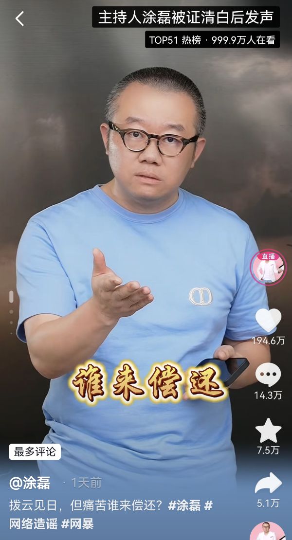 对此,涂磊依然非常生气,他表示这位女性已经对自己和家人造成影响,还有一些不知道调查结果的人,可能还会对他们一家指指点点,甚至女儿上学都会留下心理阴影,这样的痛苦如何赔偿。