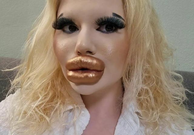 而她亦从此整容上瘾,眼耳口鼻都动刀,务求将自己变成玩具娃娃般。因为嘴唇已经比常人厚了太多,她也被评为"世界上嘴唇最大的女人",她觉得这样的自己非常美,也非常像芭比。