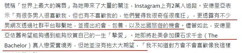 因为厚唇,她成了当地小有名气的网红,她自曝虽然有些人不喜欢她现在的模样,但是比起不喜欢,喜欢她的人更多。还有不少男性网友透露社交平台向她提出约会和出国旅行的邀请。