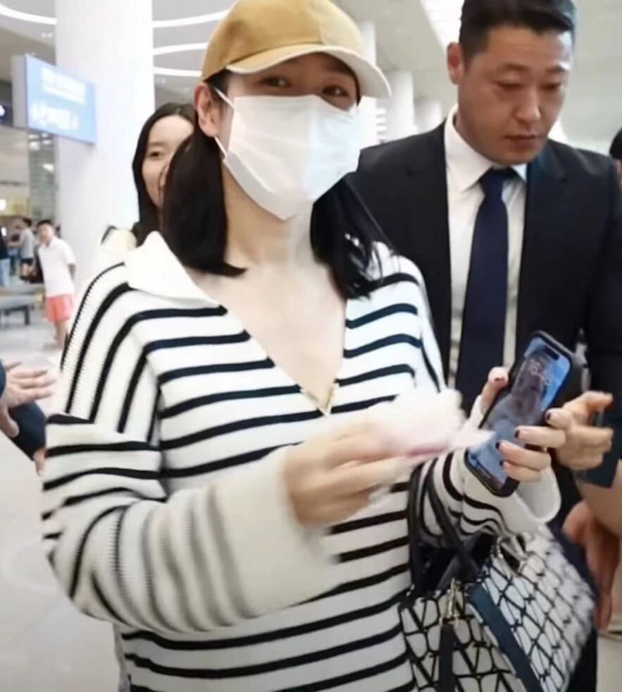 孙艺珍看完秀之后,火速赶回韩国陪伴8个月大的儿子,在返回的路途中,人气超高的她同样也吸引了大批媒体与粉丝。