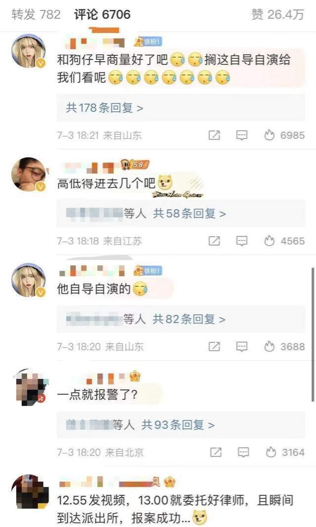 而蔡徐坤工作室的评论区当中,也有不少的网友发表了同样的看法,有网友写道"和狗仔早就商量好了吧,在这里自导自演给谁看呢?""12点55发视频,13点委托好律师,且瞬间到达派出所报案成功。"