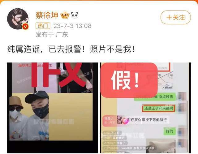 而在狗仔爆料之后,蔡徐坤一反常态,第一时间进行辟谣,表示照片根本就不是他,已经通过报警处理。而现在蔡徐坤的工作室也是晒出了报案回执。