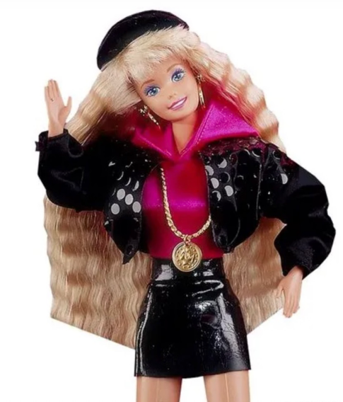 80年代流行街头摇滚,芭比摇身一变成了摇滚明星,有着夸张的爆炸头。此时,黑人芭比和拉美裔芭比正式出现,意味着芭比不仅是金发碧眼,可以是任何肤色和种族。
