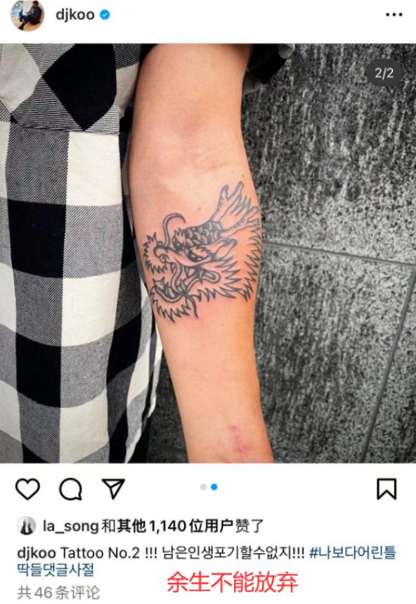 具俊晔新纹身图案是两个生肖,一只鸡一条龙,有意思的是他本人属鸡,而大S属龙--现在这两条晒纹身的动态评论区还有人喊好甜呢,别忘了这时候大S和汪小菲还没离婚啊!