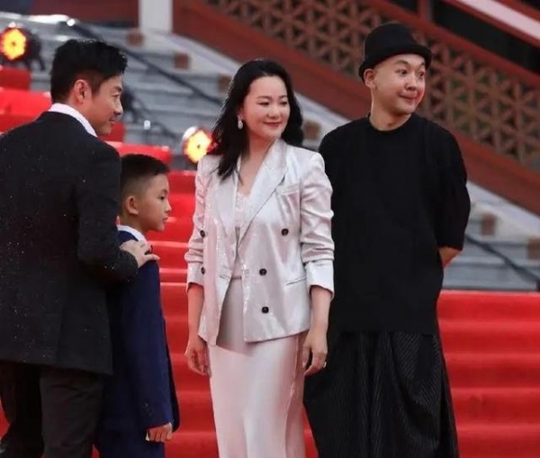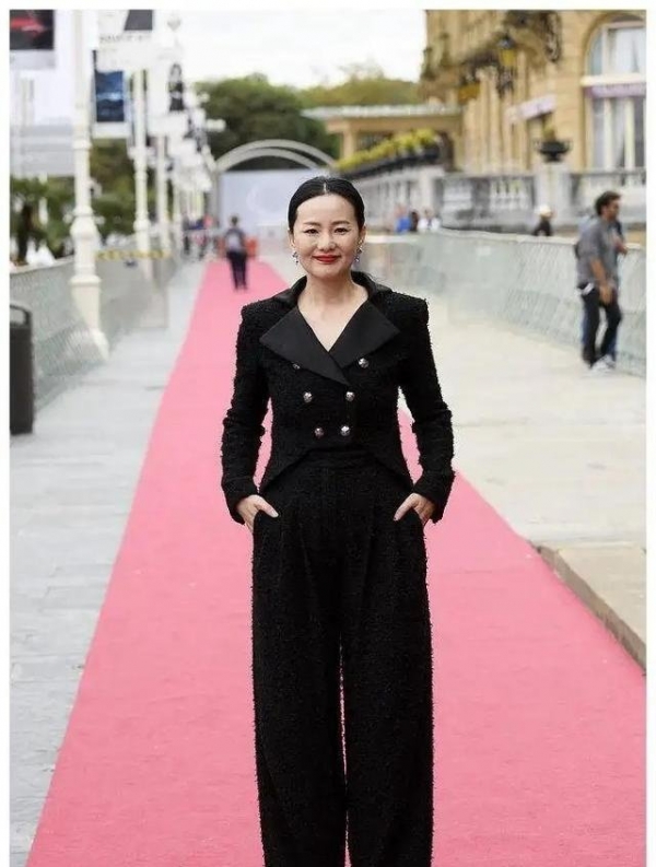 今年北京国际电影节开幕式上,她一套银色的西装配长裙,头发随意披散在肩头。