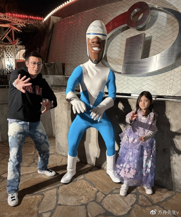 10月份的时候,陈冠希刚晒出过陪女儿打卡迪士尼的照片,父女俩一起模仿动漫里的人物的动作,画风喜感。