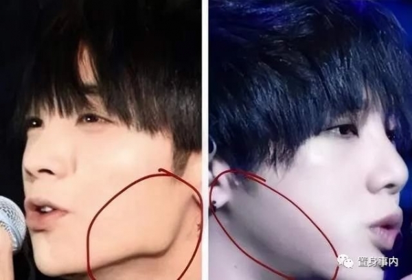 照片中能看出,一开始华晨宇的下颌骨处有很明显的凸起,这也是造成他脸型显方的原因,后来这个骨性凸起就消失了,感觉很像早期风险很大的"一刀切"削骨术。