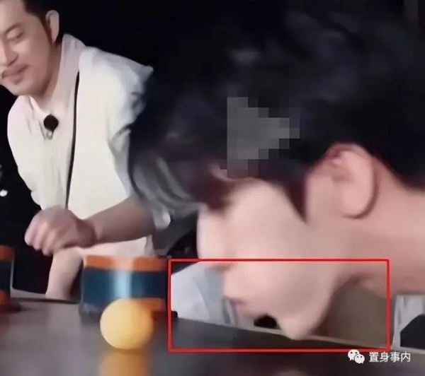 比如在综艺上做游戏用力吹气时,蔡徐坤下巴上的假体就暴露无遗。