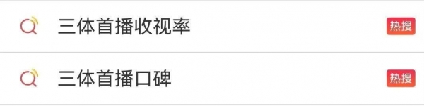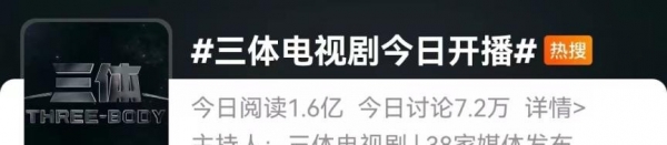 《三体》正式开播后,"三体首播收视率""三体首播口碑"等话题又登上热搜。