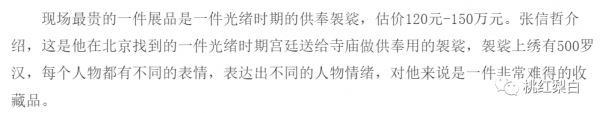 这批藏品最珍贵的是明清宫廷织绣,包括光绪供奉过的袈裟和嘉庆穿过的龙袍。