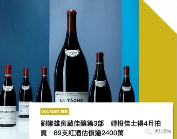 除了从藏品中挑选了绝版名包拍卖,大刘去年还拍卖了89瓶红酒,总值超过2400万元。