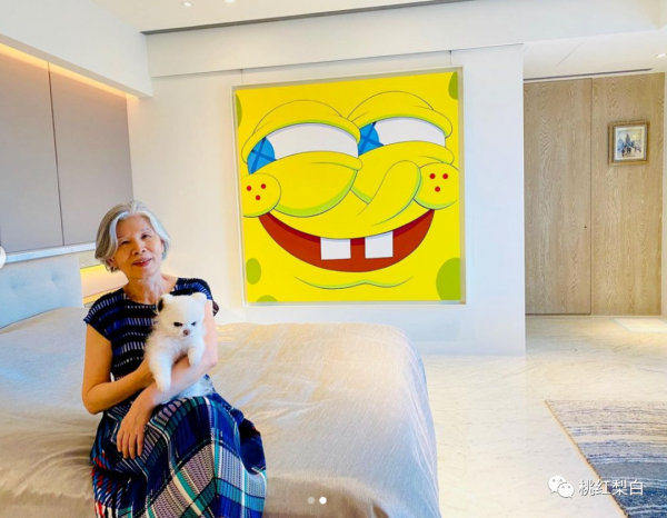 叶惠美身后的这幅海绵宝宝,就是以103万英镑拍得(如今约台币3830 万元),打破苏富比艺术品拍卖纪录的「AGAIN AND AGAIN」。
