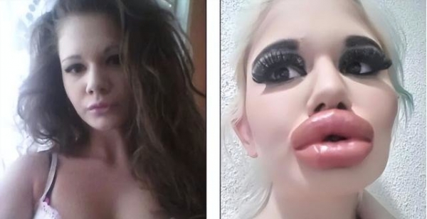 长达两年的努力下,安德里亚的嘴唇丰厚了足足四倍多,从原先的樱桃小口膨胀成香肠大小。